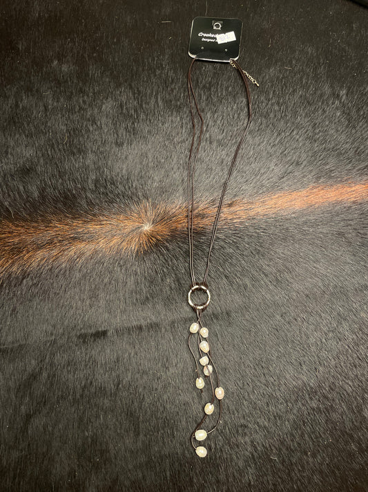 BLACK CORD NECKLACE WITH PEARL BEADS