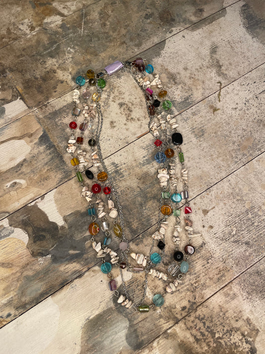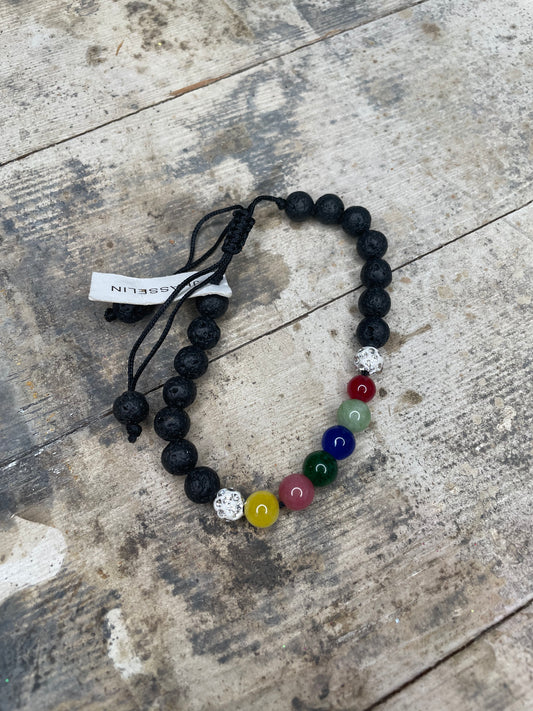 AQUA GREEN MARBLED BEADED/LEATHER TASSEL FEATHER CHARM BRACELET